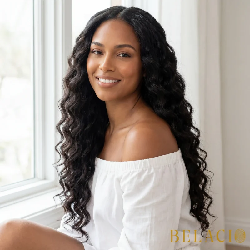 Diferencia Belacio: Nuestra textura tipo 2A requiere intervención mínima de peinado, manteniendo su patrón de ondas suaves naturalmente con rutinas de cuidado adecuadas.