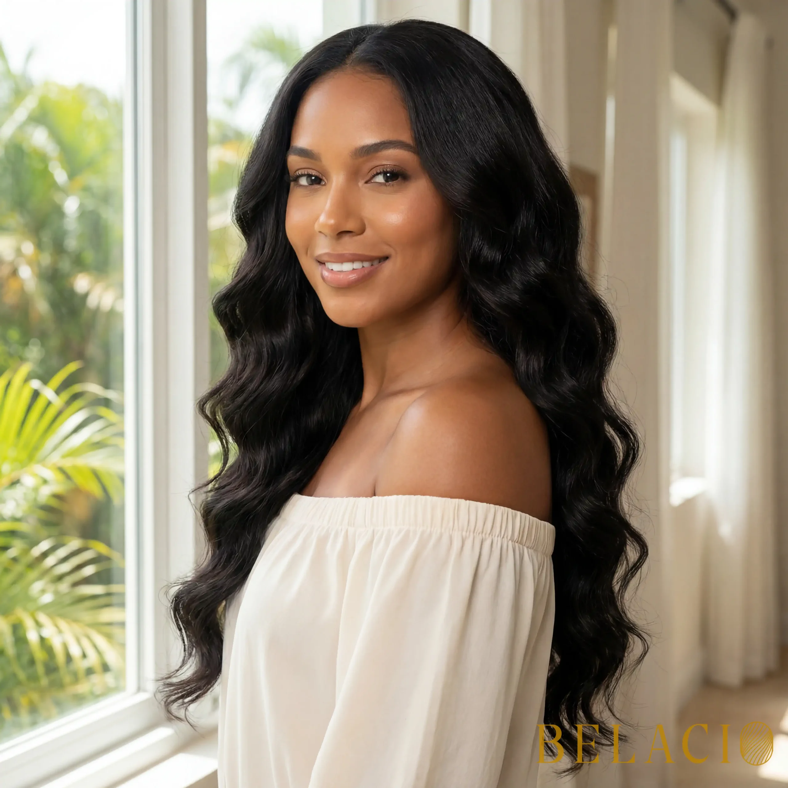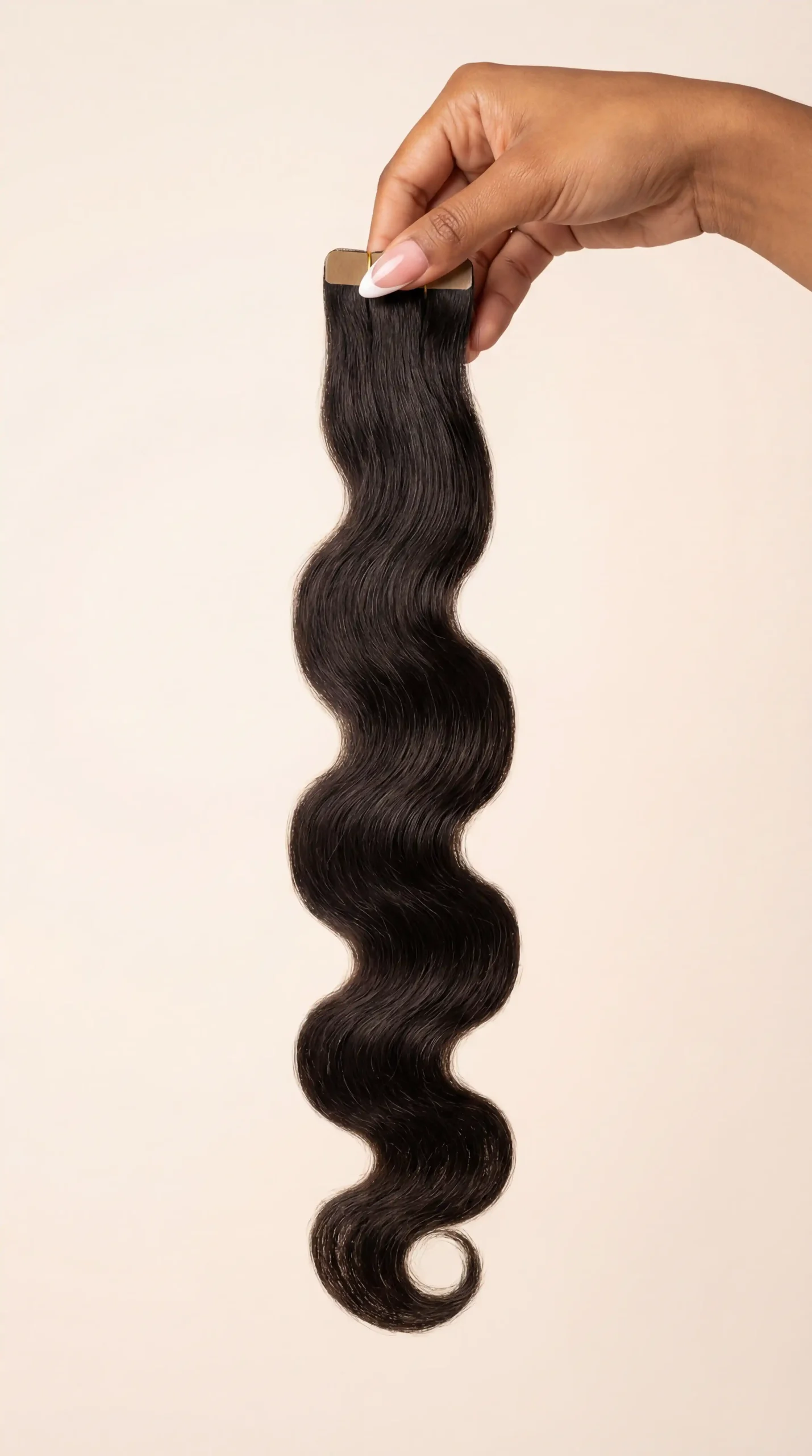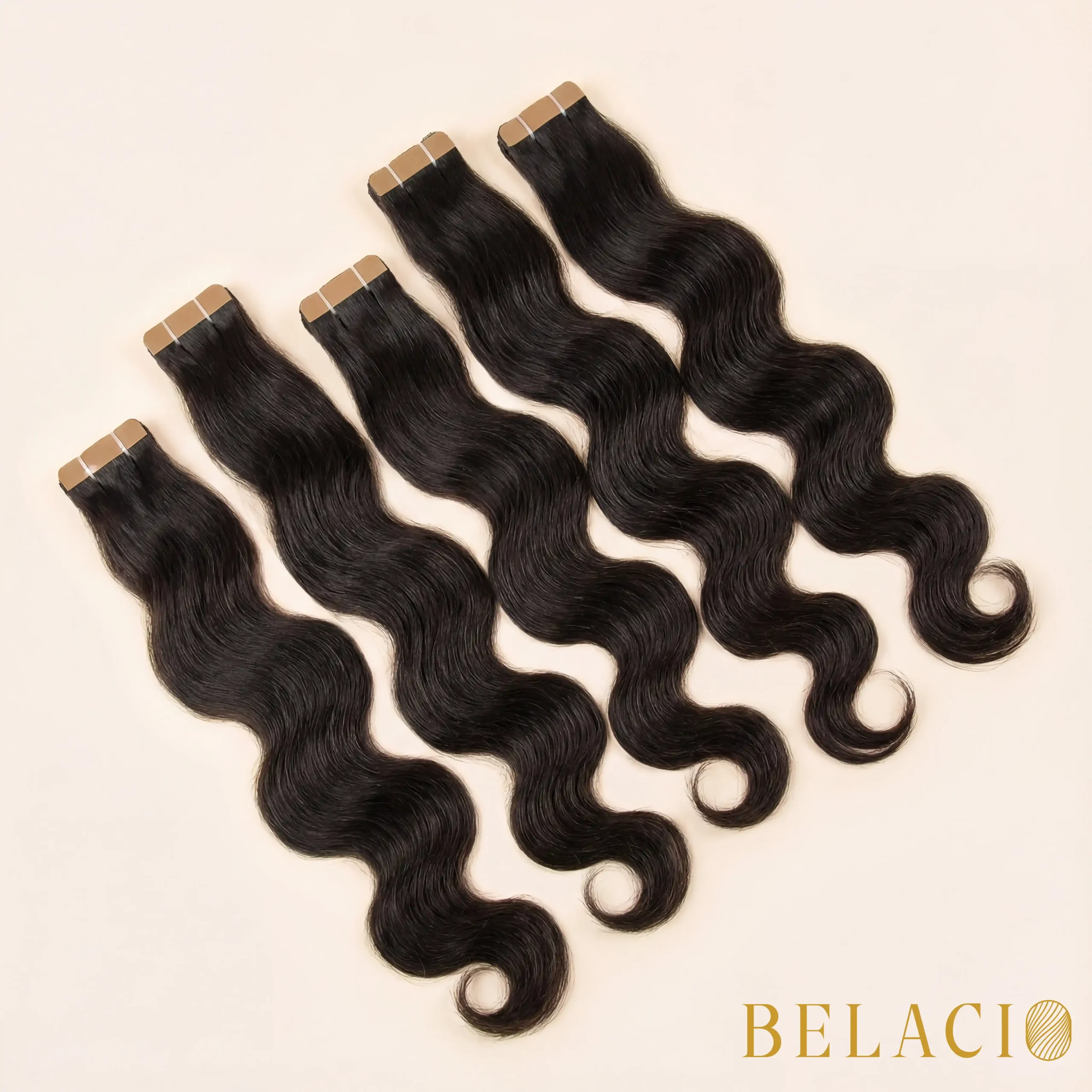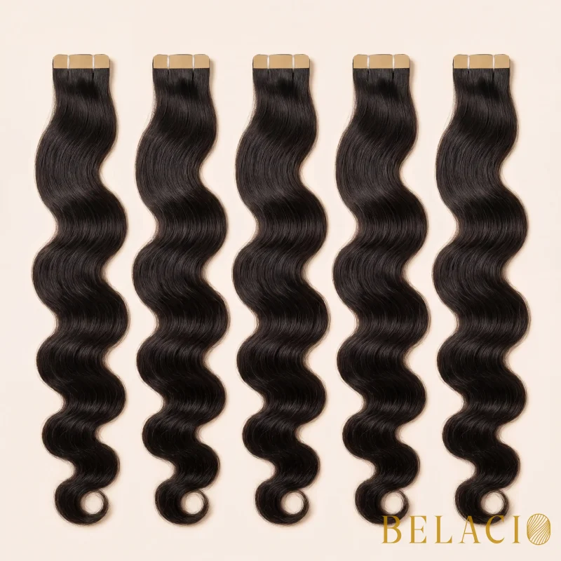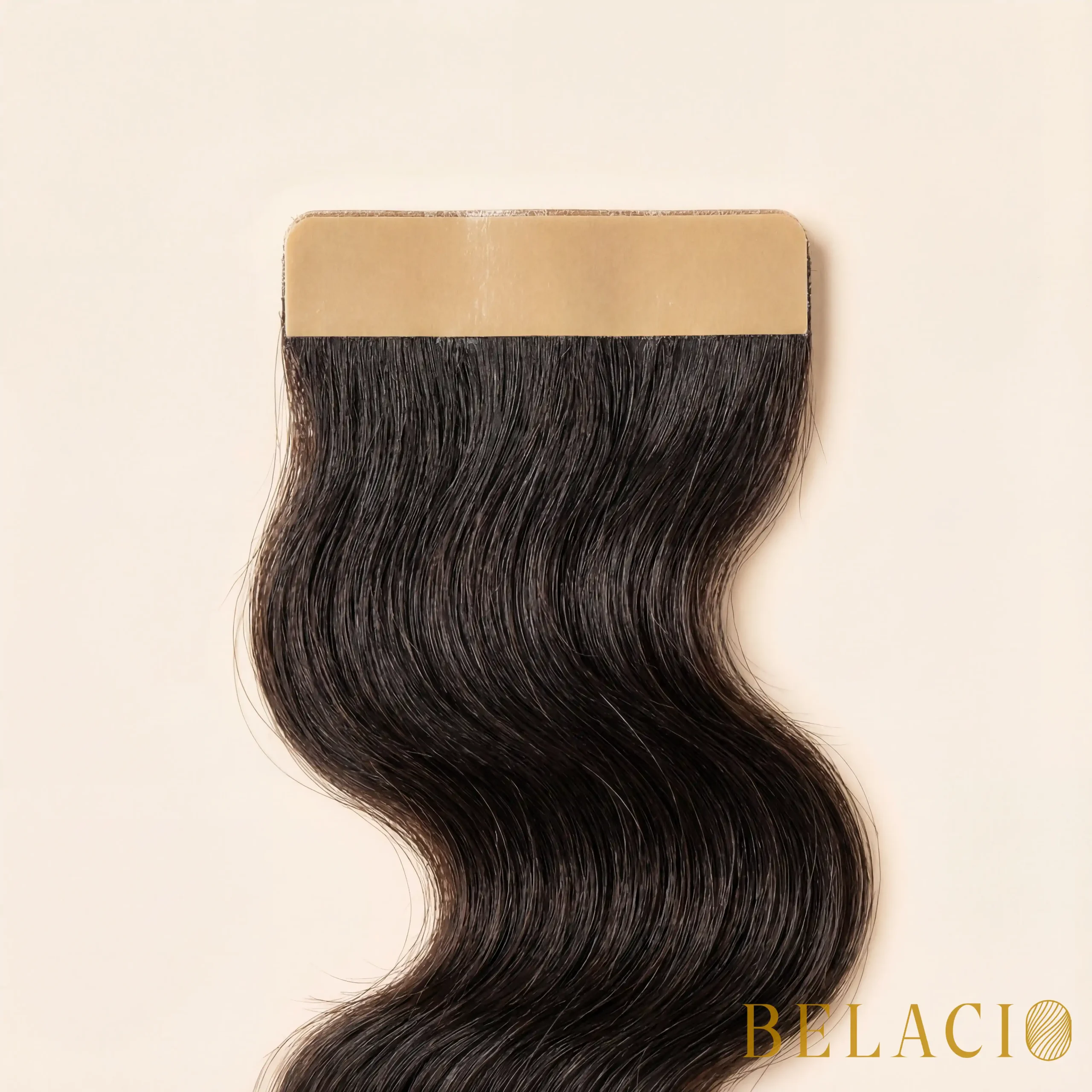 Belacio Wavy Tape-In 1B ofrece cabello vietnamita ondulado auténtico con densidad superior, brindando transformación nivel salón a través de ingeniería machine weft avanzada.