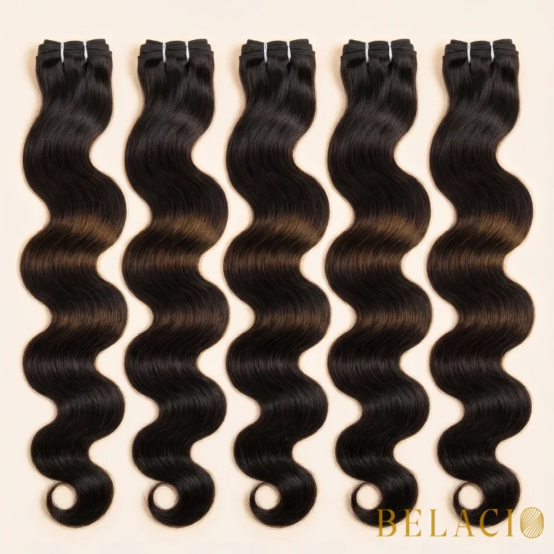 Respuesta Rápida: La mayoría de clientas necesitan 2-3 paquetes (200-300 gramos) de Belacio Body Wave Weft Extension 1B para instalación cabeza completa. Cabello fino a mediano típicamente requiere 200-250 gramos, mientras cabello grueso o denso puede necesitar 250-300 gramos para mezcla perfecta y volumen natural.